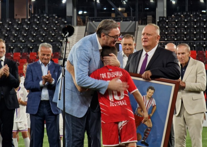 Председник Вучић рекао је да неки људи питају шта ће нам то да неко трчи са лоптом и рекао да је то за децу и да се и данас види да најмлађе не можете отерати са стадиона.
