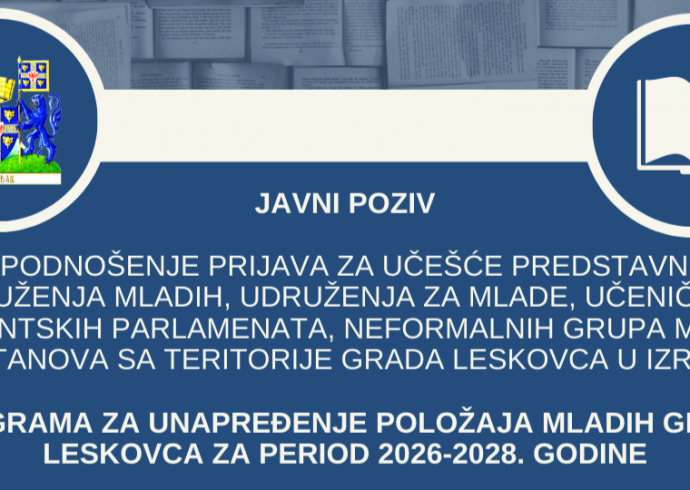 Канцеларија за младе (КЗМ) расписала је јавни позив за подношење пријава за учешће заинтересованих у изради Програма за унапређење положаја младих града Лесковца за период од 2026. до 2028. године.